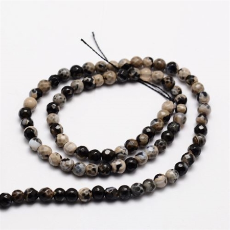 1 streng farvet, sort, facetteret agat. 4 mm.