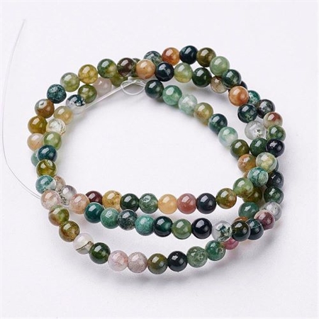 1 streng naturlig indisk agat, 4mm. 38 cm.