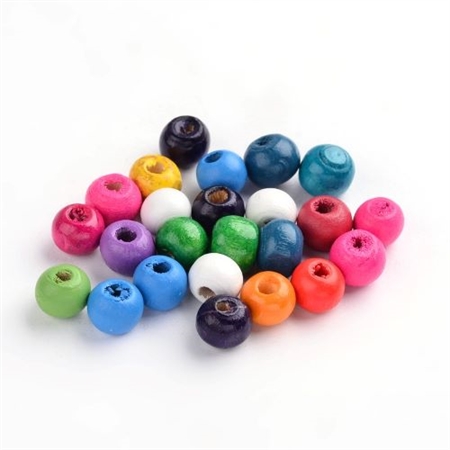 1200 stk.. farvede træperler. 8x7 mm. = 8,4 m.