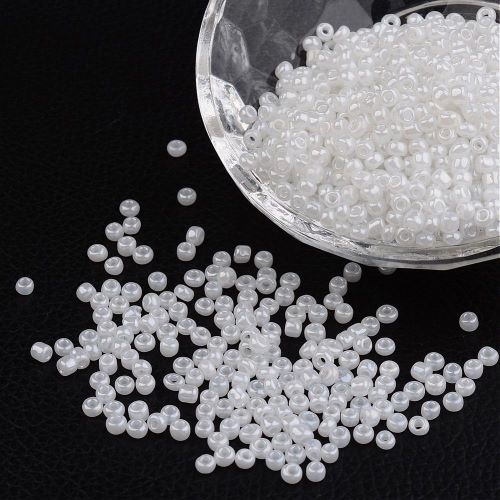 2 mm. hvide, skinnende glasperler, 50 g. = 6,6 m.