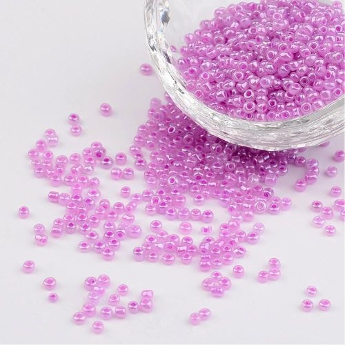 2 mm. violette, skinnende glasperler, 50 g. = 6,6 m.