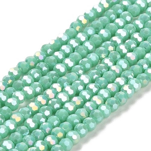 2 strenge søgrønne facet perler med glans. 3,5 x 3 mm.