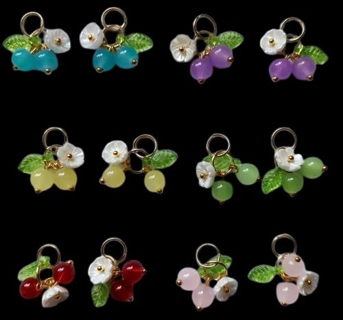 24 vedhæng med bær, blomster og blade. 4 af hver.