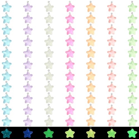 28 selvlysende stjerne vedhæng. 4 af hver farve-
