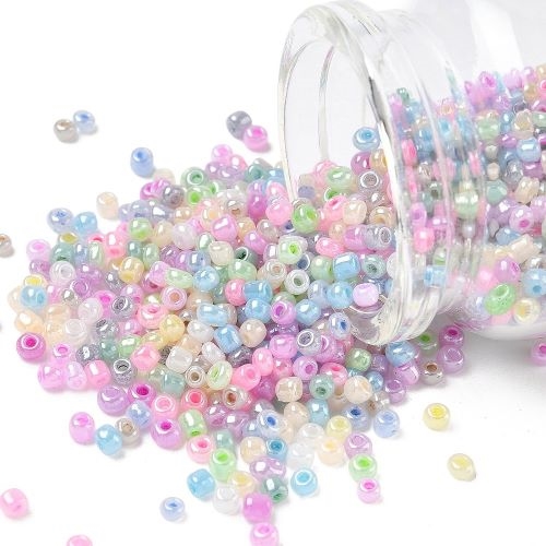 3 mm. ass. skinnende, pastelfarvede glasperler, 50 g