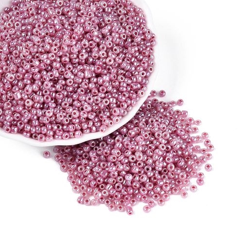 3 mm. skinnende fuchsiafarvede glasperler, 50 g