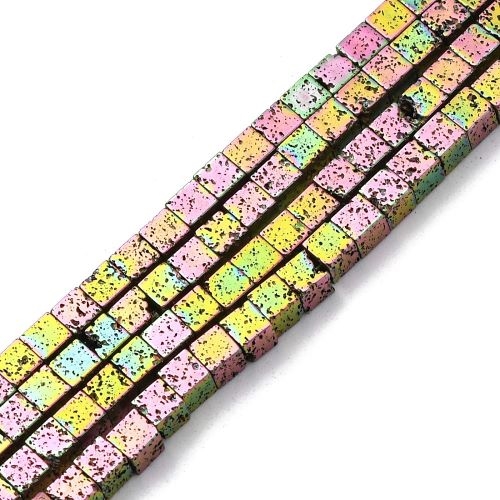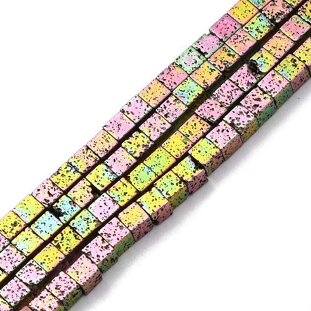 3x3x3 mm. lava perle med lyserød/gul/turkis effekt