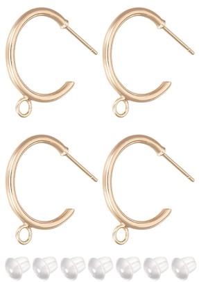 4 halve creoler i messing med øje og 18K forgyldning + 4 plastic endedutter