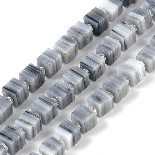 40 cm. håndlavede, grå, firkantede lampwork perler. 5,5 x 5,5 mm.