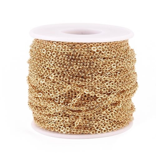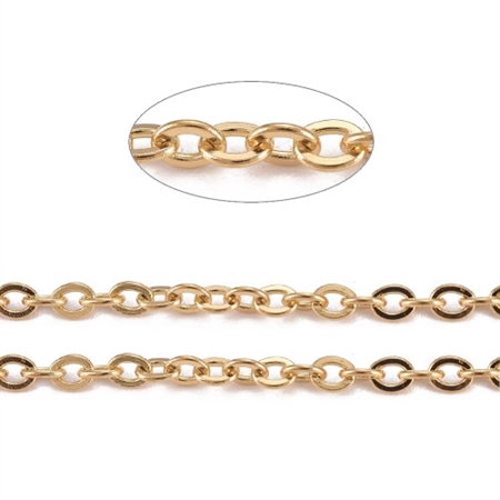 5 m. forgyldt kæde i stål. Str. 3x2x0,6mm.