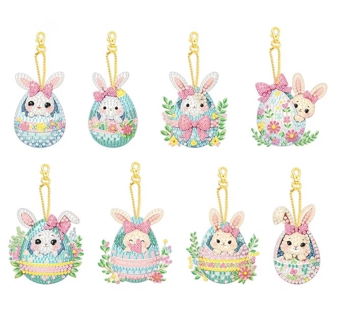 8 nøgleringe med påskeharer