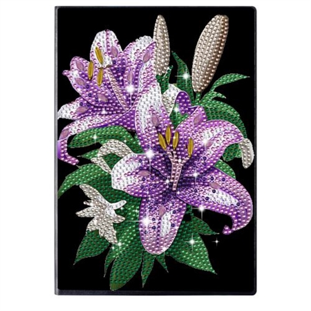 Notesbog med lilla blomster