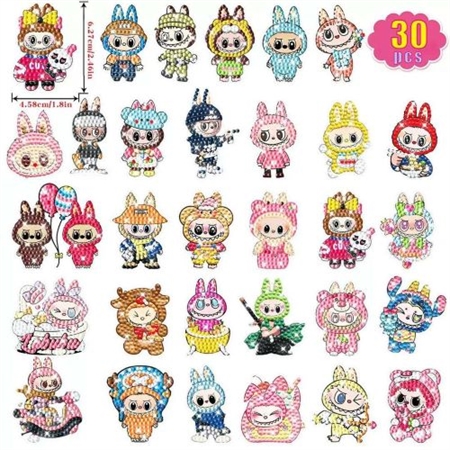 Indeholder ALT til at lave disse 30 stickers med de MEGET populære Labubu figurer